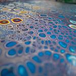Mit weißer Farbgrundlage und einer ziemlich bunten Mischung entstand ein Pouring, das den Eindruck einer schier unendlichen Zellen Unterwasserlandschaft vermittelt.
